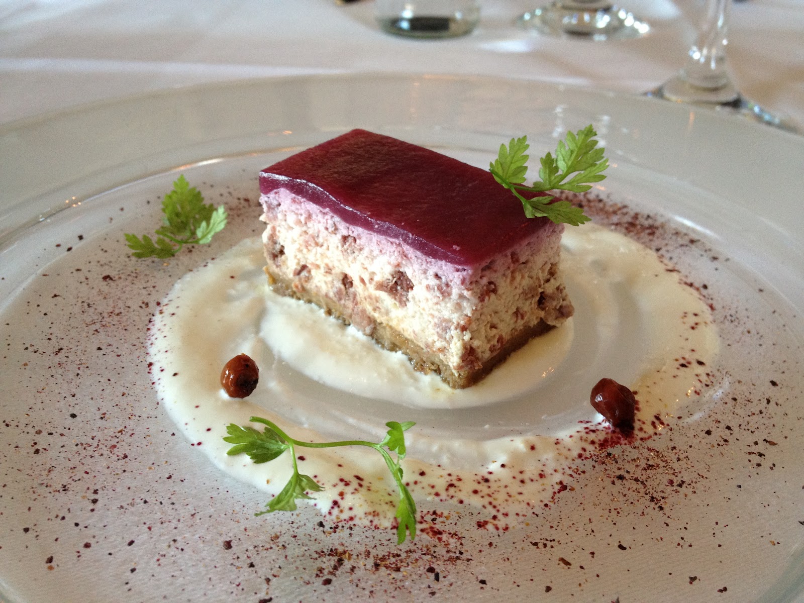 | Förrätt på Stallmästaregården, rökt rencheesecake |